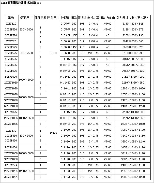 注意:該篩機是一種全封閉型的直線振動型振動篩,根據(jù)客戶的要求不同,可以根據(jù)用戶的不同要求定制設(shè)備.如需購買設(shè)備請咨詢公司服務(wù)人員,此表參數(shù)為標(biāo)準(zhǔn)篩機參數(shù),僅供選型參考.