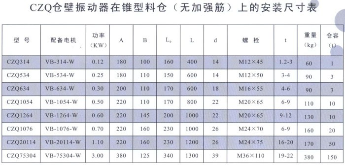 咨詢熱線:15544296999 CZQ倉(cāng)壁振動(dòng)器是一種以振動(dòng)電機(jī)為激振源的一種新型防閉塞裝置,將該裝置安裝于各種料倉(cāng)上,通過(guò)振動(dòng)可使料倉(cāng)中結(jié)拱的物料發(fā)生變位運(yùn)動(dòng),從而起到解拱作用。