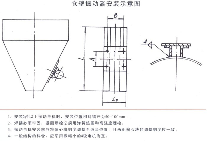 1、安裝2臺(tái)以上振動(dòng)電機(jī)時(shí),安裝位置相對(duì)錯(cuò)開為50~100mm。