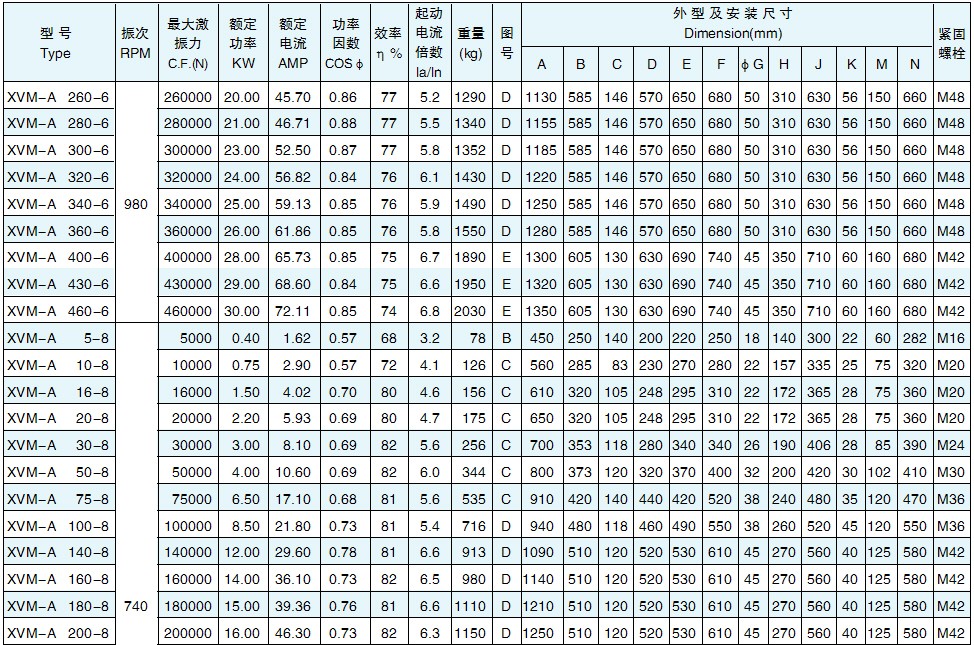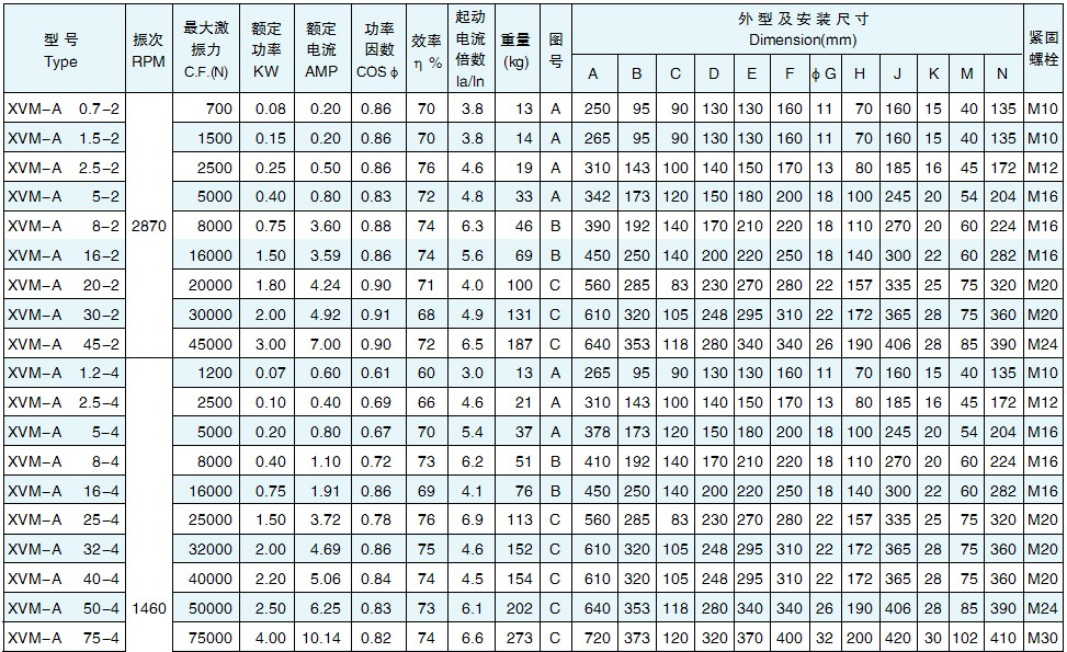 XVM-A系列振動(dòng)電機(jī)相關(guān)技術(shù)參數(shù):