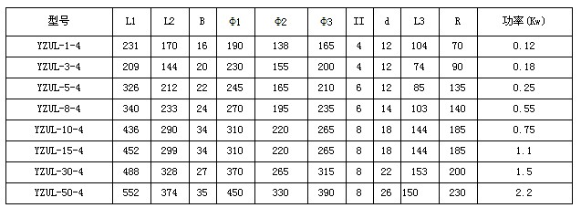 YZUL型振動(dòng)電機(jī)技術(shù)參數(shù):